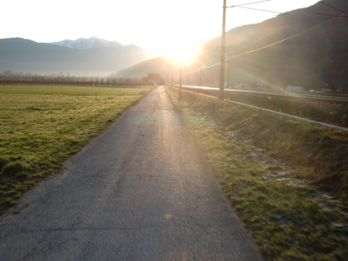 hatte mich bezüglich temperatur deutlich verschätzt. in der früh nur 2°. recht frisch für die 3/4 hose. aber umziehen wollte ich mich dann auch nicht mehr.