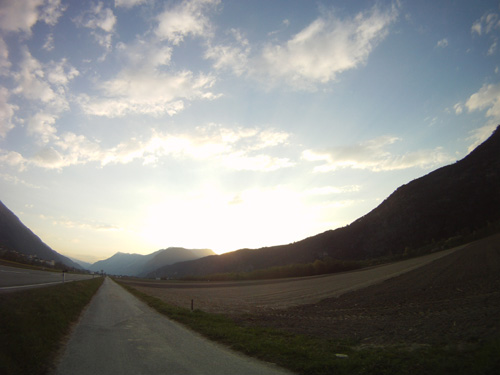 bei untergehender sonne nach hause. windjacke war schon notwendig, aber ansonsten noch total fein. vor allem der rückenwind. ;-)