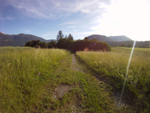 zuerst zum gruenberglift rauf. dabei mal ein bisschen gas gegeben (war o.k.) und locker in einer runde wieder retour. bei der einfahrt in ein trailstück war ich dann so schlau: