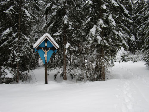nur mit noch mehr schnee. war also kein "richtiges" laufen, da ich entweder recht tief eingesunken bin, oder der boden unter der schneedecke so uneben war, dass jeder schritt zuerst ausbalanciert werden musste. recht anstrengend für die fussgelenke. aber trotzdem eine schöne runde.