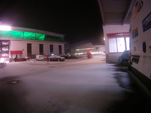 erst um 1/2 8e aus dem büro weggekommen. -3°, leichter schneefall, starker gegenwind.