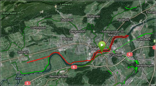 so suchte ich mir eine beleuchtete route in solothurn und habe für mich den 2-bruecken-lauf kreiert. eine lässige runde entlang der aare. die bin ich 3 1/2 mal gelaufen.