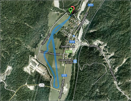 jedenfalls wollte ich vor dem schwimmtraining noch ein wenig langlaufen gehen. denn laut seefeld-homepage sollte jeden montag beim alpenbad leutasch eine 400m-runde zwischen 17:00 und 20:00 beleuchtet sein. mit betonung auf sollte. grrrr