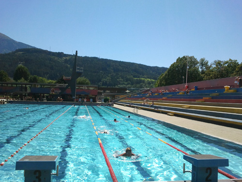 am abend wieder schimmtraining in der halle, im alpenbad leutasch. diesmal mit trainer jörg. schön langsam beginnt mir das schwimmen spass zu machen ... beängstigend.