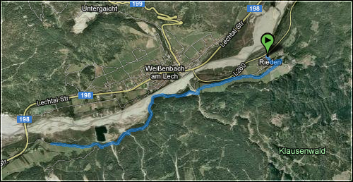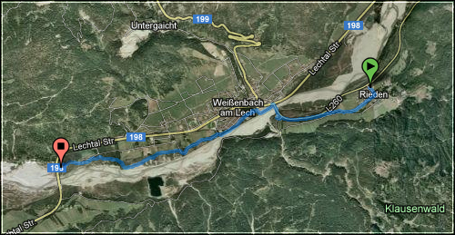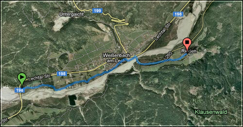 jedenfalls fuhr ich mit dem auto von den schwiegereltern aus nach rieden, um mir eine halbwegs passable aber faire strecke zu suchen. eigentlich wollte ich das lechtal "hinauf" laufen, was auf 5km +20hm ergeben hätte, aber dann hätte ich rückenwind gehabt und das wollte ich nicht.