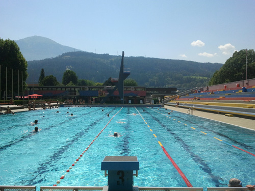 in der mittagspause also ab ins tivoli. mit freund jojo und bernhard. es war zwar schon mehr los, aber zum bahnenschwimmen war's sehr o.k.