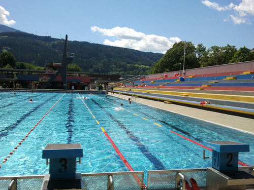 schwimmen - bei wirklichem badewetter! was natürlich aber auch bedeutete, dass im tivoli mal ein bisschen mehr los war. auf den abgesperrten bahnen hat's trotzdem gepasst. man kann halt nicht immer ganz alleine unterwegs sein.