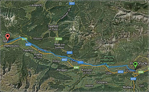 bis telfs jedenfalls. nach einem ampelstopp wollte ich kräftig antreten und - freilauf kaputt. fahrt ende. aber - glück im unglück - meine dame war grad mit dem auto in der nähe und konnte mich holen. das radl stellten wir volley zu meinem radlgeschäft bergwärts in rietz.