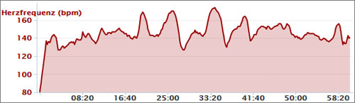 ich begann mit 04:07, steigerte auf 03:48, dann 04:20 zum durchschnaufen und gab dann gas mit 03:31. da ging mein puls schon fast durch die decke. nochmal 04:21 und wieder 03:48. aber - ich bin natürlich einfach nicht in form. zwar erholte ich mich subjektiv, der puls blieb aber viel zu hoch. den rest lief ich leicht tempowechselnd zwischen 04:12 und 04:34.